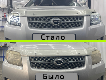 Убираю матовость, желтизну и потертости. Фары становятся прозрачными и светят ярче — безопасность повышается даже в плохую погоду.